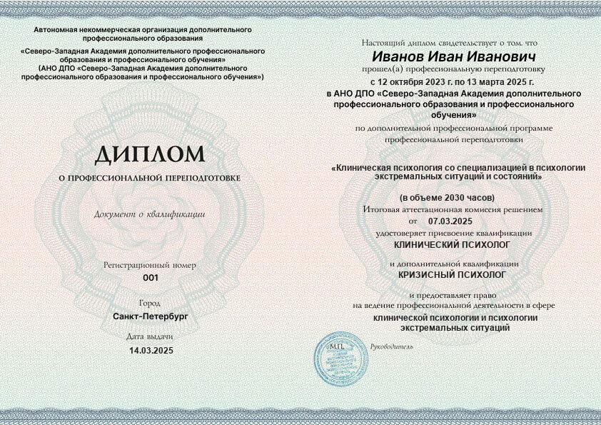 - 2 квалификации: Клинический психолог + Кризисный психолог